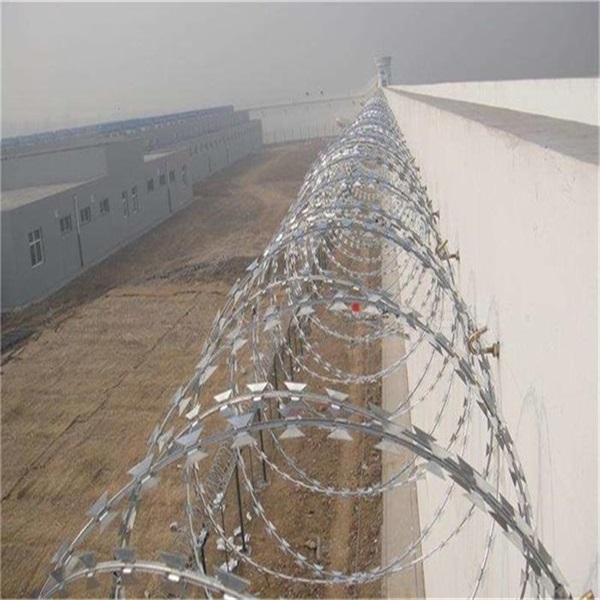 監獄刀刺網又叫刀片刺網、刀片刺絲、蛇腹網、刮刀型刺網、使用多是監獄,看守所,戒毒所,勞教所,等重要場所,監獄隔離網可平地安裝,也可在圍墻上二次安裝,有效防止攀逃。