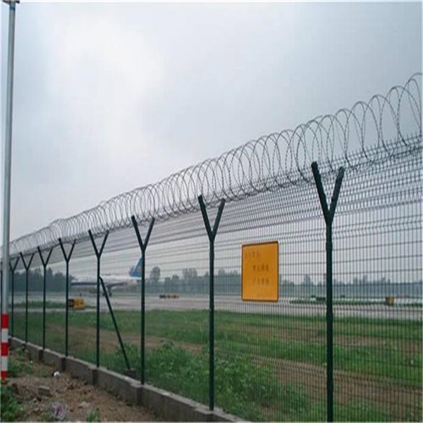 3、機場圍界的總高度一般是3米,立柱之間的間距3m,為了確保圍界安置后的穩固,機場一般要求每兩根立柱要設立一道斜撐,轉彎處每立柱都要有一道斜撐。