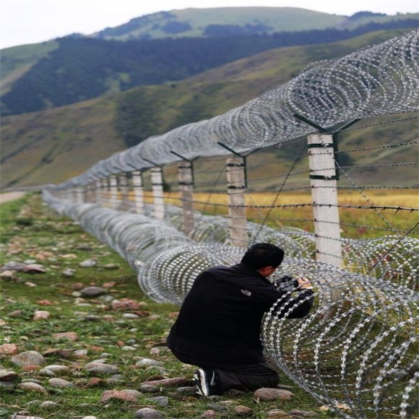 4.滾刺網(wǎng)在圍墻頂端安裝刺網(wǎng)后既增加圍墻的高度,又可以防止入侵者的攀爬,具有隔離的效果。一船圍墻安裝防攀爬隔離的材質(zhì)要看安裝單位的要求,如普通的小區(qū)用墻安裝,高鐵的刺絲滾籠,機場等大部分選擇熱鍍鋅滾刺網(wǎng),成本相對來說低廉,也可以起到防攀爬隔離的效果。如核電站圍墻,天然氣站等防護等級高,且需要美觀視覺效應(yīng)的廠區(qū)一般選擇不銹鋼304或者316材質(zhì)的滾網(wǎng),除此之外就是像監(jiān)獄,看守所,部隊等要求特別高的地方也是選擇不銹鋼材質(zhì)的刀刺滾網(wǎng)。