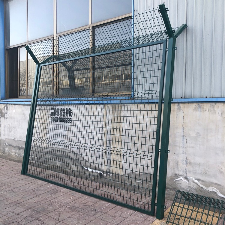 機場鋼筋網(wǎng)圍界規(guī)格常見的是:鋼筋網(wǎng)片一般為墨綠色,外形尺寸2.5*3m,網(wǎng)孔50*100mm,絲徑5mm,上端有V型支架用來固定刀刺滾籠,加強二次防護功能。機場護欄網(wǎng)立柱采用80*60*6mm矩形鋼管,預埋0.5m左右,整體進行熱鍍鋅和熱浸塑處理,防腐功能強、使用壽命長。
