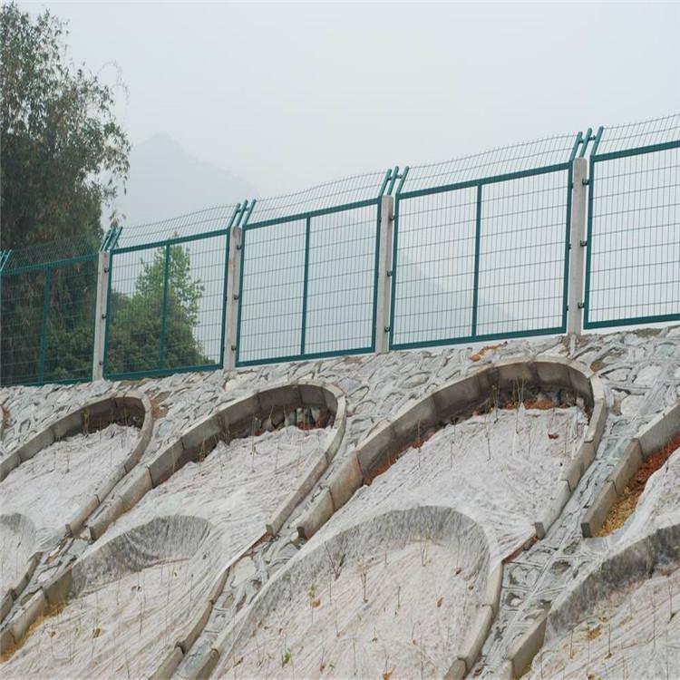 金屬網(wǎng)片防護(hù)柵欄網(wǎng)絲采用HPB300直徑6.5mm高線鋼絲冷拔加工,上部向外折角30°焊接成型后整體鍍鋅并進(jìn)行熱浸塑處理。鍍鋅量270g/㎡,浸塑厚度0.8mm-1.2mm。金屬網(wǎng)片防護(hù)柵欄,表面進(jìn)行熱鍍鋅處理,鍍鋅量270g/㎡然后在浸塑。 金屬網(wǎng)片防護(hù)柵欄用途:主要用于各個(gè)鐵路 沿線的安全防護(hù)隔離柵欄。