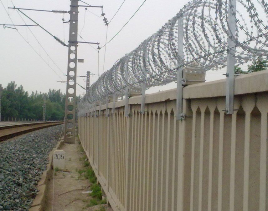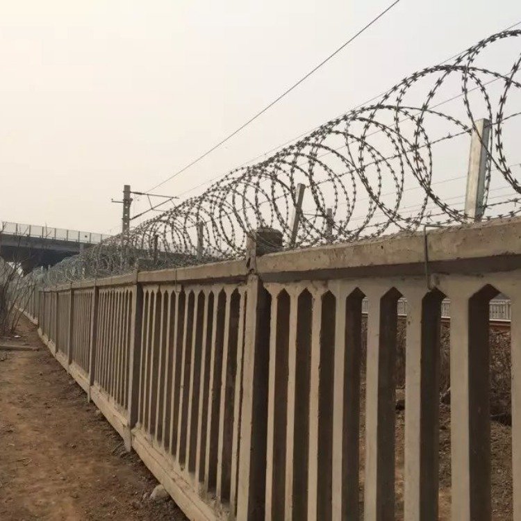 鐵路安裝刺絲滾籠又名刮刀型刺絲,是一種發(fā)展起來的防護(hù)、隔離能力較強(qiáng)的新型防護(hù)網(wǎng)產(chǎn)品。鋒利的刀型刺由雙線扣裝后成蛇腹?fàn)睿让烙^又讓人不賽而栗。起到了很好的阻嚇作用。同時(shí)該產(chǎn)品具有美觀、防阻效果好、施工便利等優(yōu)點(diǎn)。刺絲滾籠支架一般用于鐵路防護(hù)用,因刀片鋒利不易觸摸,起到一定的嚇阻作用那個(gè),刀片刺繩,用途比較廣泛,他可以用于居民的墻體防護(hù),也可以用來圈地等,該刺繩防盜效果比普通刺繩要好,價(jià)格也不高,所以刀片刺繩越來越應(yīng)用廣泛。