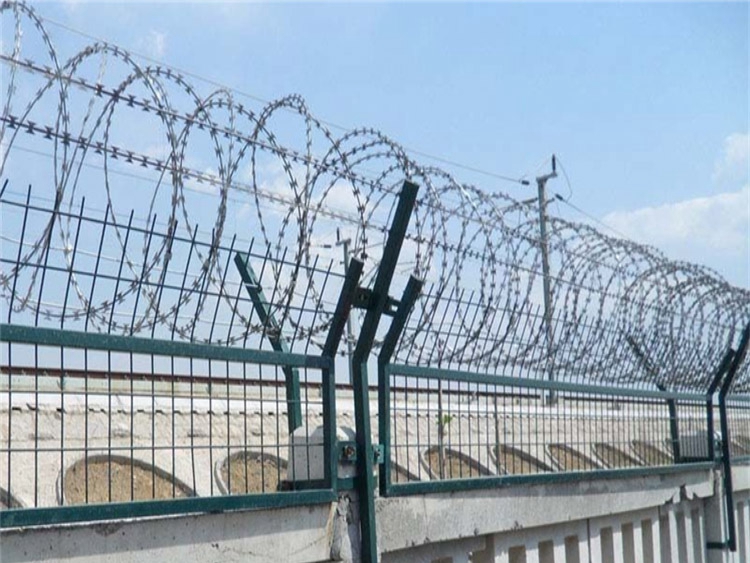 監(jiān)獄防逃鋼網(wǎng)墻,監(jiān)獄圍墻周界鐵絲網(wǎng),刀刺V型網(wǎng)支架
