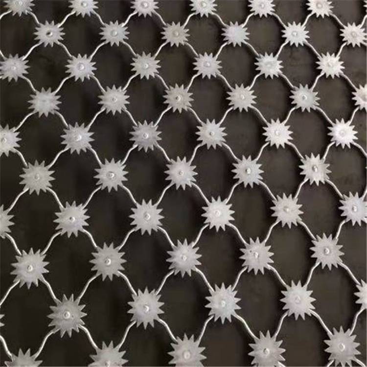 1監(jiān)獄梅花刺片防攀爬護(hù)欄網(wǎng)的太陽花刺片由Q235低碳鋼板沖壓而成,其直徑大于7.5cm ,刺片厚度為常用1.2mm。