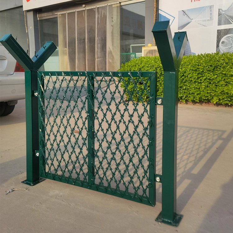 圍墻巡邏道隔離網建設于內外墻地面及高墻之上,網墻內側或頂部加裝蛇腹形刀刺網,形成-道高不可攀、難以逾越的隔離障礙。配合高壓打擊電網、各種監控報警設備確保場所安全萬無一失。看守所監區內鋼網墻在生產形勢及產品原材料的不同上邊有兩種類型,鋼絲網片型與焊接刀片刺繩網片型。這兩種只是網片上邊的材料不同,立柱邊框都是可以通用的。