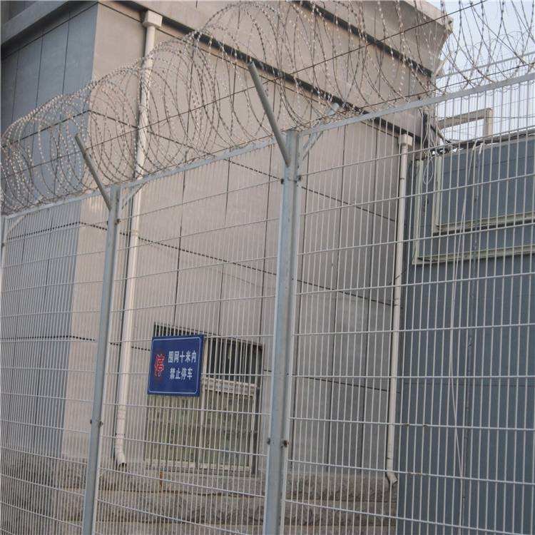 監(jiān)獄物理隔離網(wǎng)監(jiān)獄鋼網(wǎng)墻又叫監(jiān)獄防攀爬隔離網(wǎng),監(jiān)獄隔網(wǎng),監(jiān)獄網(wǎng)圍墻是非常重要的監(jiān)獄安全防護設施,由焊接鋼網(wǎng)加蛇腹形刀刺網(wǎng)組合而成。主要是采用低碳鋼絲焊接或者是編織成的小孔網(wǎng)片,頂部加上防爬的螺旋滾刺網(wǎng),由V型支架立拄,加強型焊接片網(wǎng),安全防盜連接件和刀片刺網(wǎng)組成,既安全環(huán)保又經(jīng)久耐用。監(jiān)獄防攀爬隔離網(wǎng),監(jiān)獄隔離網(wǎng),監(jiān)獄網(wǎng)圍墻立柱焊接成Y型,表面浸塑處理,網(wǎng)片高度2000m-3000mm,長度2500m-3000mm,v型頂端安裝刀片刺網(wǎng),直徑采用50cm-60cm,刀片刺網(wǎng)主要是由熱鍍鋅鋼板或不銹鋼薄板沖壓而成的,它擁有尖銳的刀片,高張力鍍鋅鋼絲或者不銹鋼絲做芯線組合而成的產(chǎn)品。監(jiān)獄護欄網(wǎng)網(wǎng)格結構簡練、便于運輸、安裝不受地形起伏限制,特別是對于山地、坡地、多彎地帶適應性極強。監(jiān)獄編織隔離網(wǎng),看守所編織隔離網(wǎng),在押犯編織隔離網(wǎng)材質(zhì):低碳鋼絲中碳鋼絲不銹鋼絲等