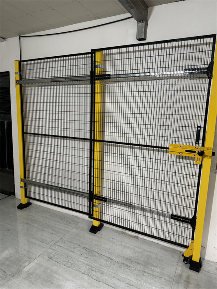采用Q235碳鋼作為護(hù)欄框架,中間加上網(wǎng)格,透明亞克力或者非透明的塑板等網(wǎng)格尺寸顏色是可以定制的,常用的機(jī)器人圍欄或車間隔離網(wǎng)的網(wǎng)格為40*40網(wǎng)格也有25*100網(wǎng)格或者50*50網(wǎng)格。常用網(wǎng)格顏色黑色、黃色也有白色、灰色等!機(jī)器人圍欄的存在有效解決了機(jī)械設(shè)備運(yùn)作時的防護(hù)、隔離的安全問題!