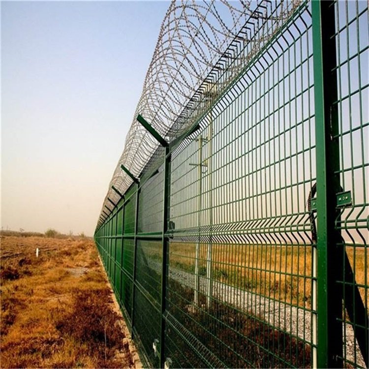 普通的機場圍界網(wǎng)是如何定價的?艾瑞絲網(wǎng)公司來做詳細解答機場護欄網(wǎng)一般選用低碳鋼絲編制焊接加浸 塑的防腐處理而組成,具有美觀、實用、方便運輸和安裝的特點。機場護欄網(wǎng)的結(jié)構(gòu)簡單的樣式就是直接浸塑網(wǎng)片和浸塑立柱連接,省了邊框,更節(jié)省了材料,所以價格相對來說偏低一些,稱之為雙邊絲機場護欄網(wǎng),使用網(wǎng)片加了三道折彎,在整體成本增加不多的同時,使網(wǎng)面強度和美感顯著提升。這樣的樣式簡單,確定好了立柱和網(wǎng)片的絲徑.