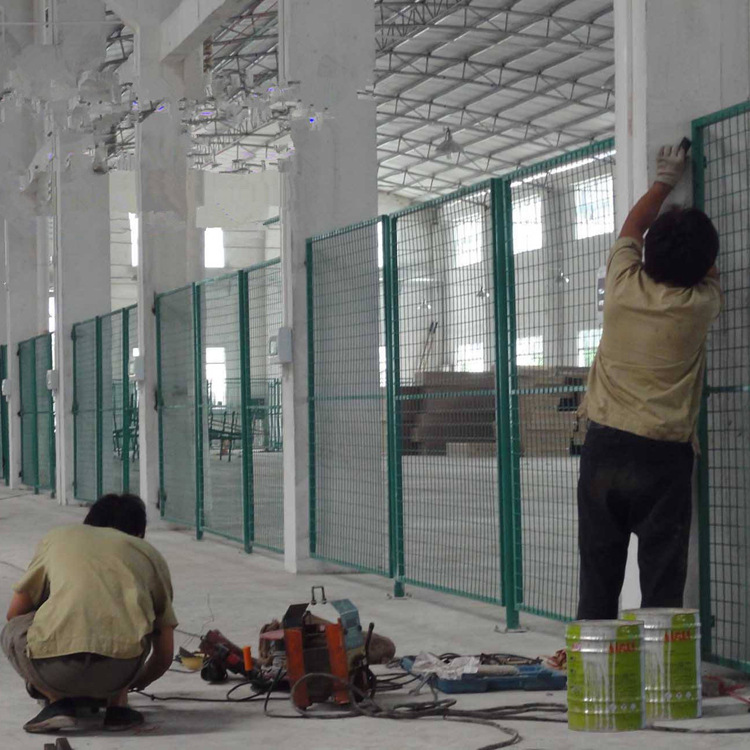 車間護欄網(wǎng)是經(jīng)電焊網(wǎng)片機對鐵絲焊接后,再經(jīng)折彎、噴塑或PVC等多道工序加工制作而成。具有耐腐蝕,美觀,并有效起到防護等特點。