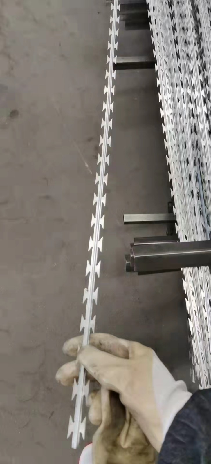 2、:沖壓成型的刀片需要與高強度芯線擠壓包裹在一起,芯線一般為熱鍍鋅或者不銹鋼材質(最好刀片,芯線里外用同種材質)之后還要進行調直,達到預定的長度就可以自動切斷。